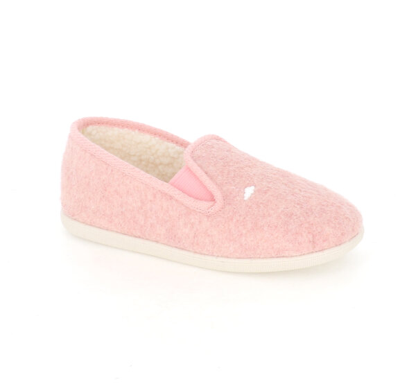 La matière principale, issue de fibres de polyester recyclé, présente un aspect laine grattée au toucher doux et moelleux, rappelant le charme authentique des charentaises traditionnelles. La doublure intérieure en sherpa effet peau de mouton enveloppe vos pieds dans une chaleur réconfortante, idéale pour les journées froides.