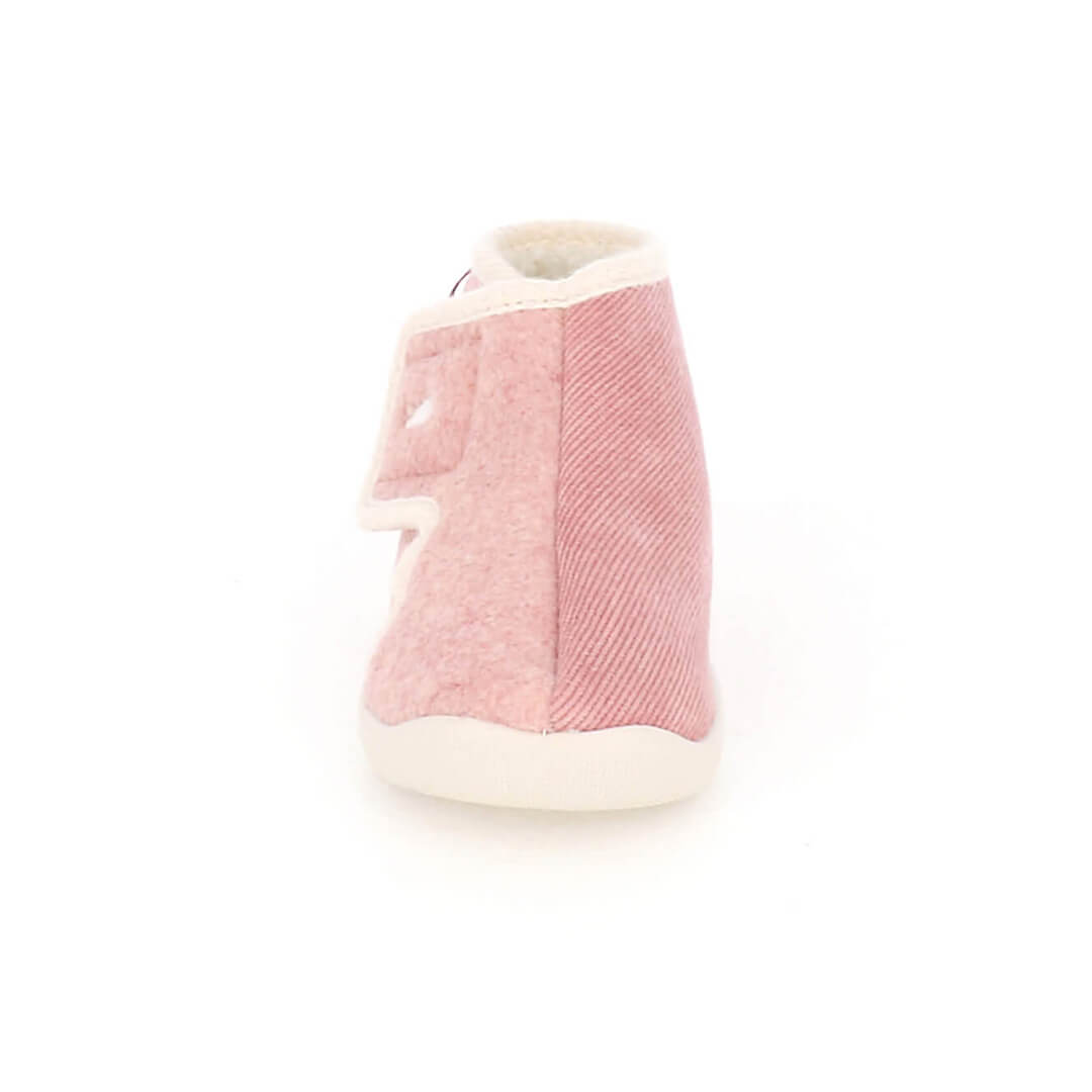 Ce chausson au design original joue sur les contrastes avec une coupe diagonale audacieuse où se rencontrent deux matières nobles : un velours côtelé fin et un feutre effet laine grattée. En miroir parfait, ces textures se subliment mutuellement dans un look monochrome raffiné. Fermeture pratique par velcro et broderie nuage Hellocotton pour une touche de douceur lumineuse.