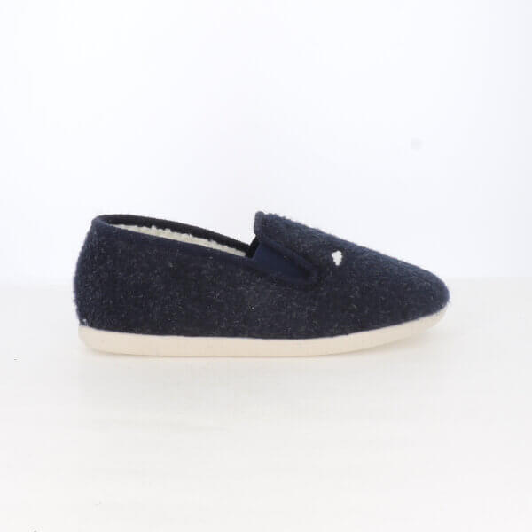 La matière principale, issue de fibres de polyester recyclé, présente un aspect laine grattée au toucher doux et moelleux, rappelant le charme authentique des charentaises traditionnelles. La doublure intérieure en sherpa effet peau de mouton enveloppe vos pieds dans une chaleur réconfortante, idéale pour les journées froides.